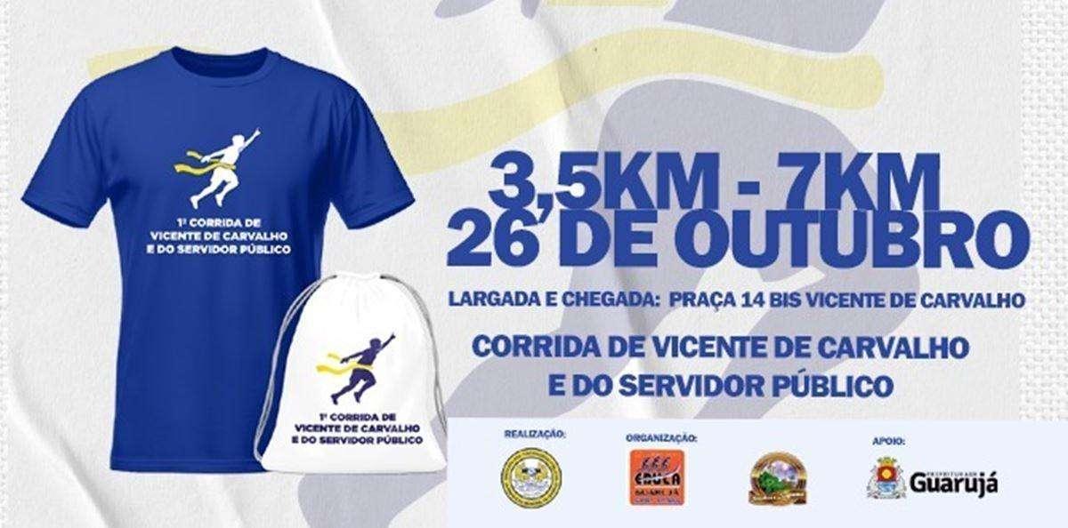 A I Corrida de Vicente de Carvalho e do Servidor Publico 3.5K e 7K DO GUARUJÁ São Paulo aqui denominado corrida, é promovido pelo Sindicato dos Funcionário Públicos do Guarujá , contando com a organização do Educa Guarujá Sport Fitness e apoio da Prefeitura Municipal do Guarujá e da Secretaria de Esportes e Lazer do Guarujá e respectivos órgãos públicos. Tem caráter de evento esportivo, e faz parte do calendário oficial de eventos da cidade de Guarujá – SP, com objetivo de inclusão social, incentivo ao esporte e confraternização entre adeptos da modalidade. O evento é aberto a atletas anônimos, amadores, profissionais, equipes, associações, federações, clubes e confederações sendo composto por um regulamento especifico agora referido.