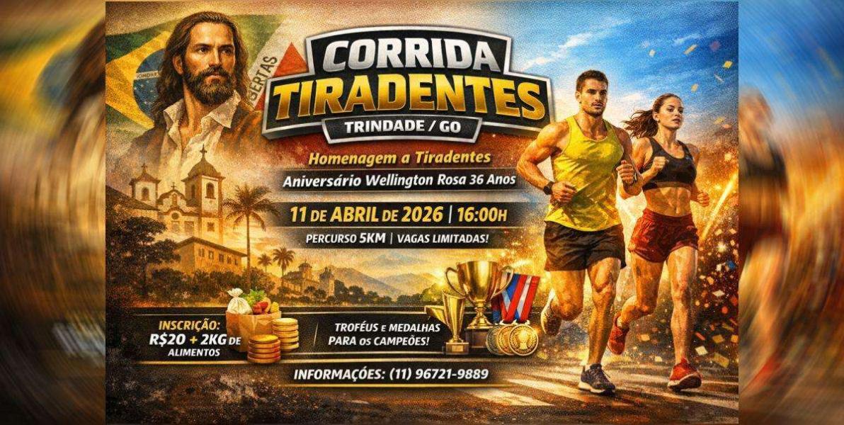 A Corrida Tiradentes – Trindade/GO é um evento de caráter comemorativo, esportivo e festivo, promovido por Wellington Rosa, com o objetivo de incentivar a prática esportiva, a confraternização entre os participantes e a celebração da data especial do organizador.