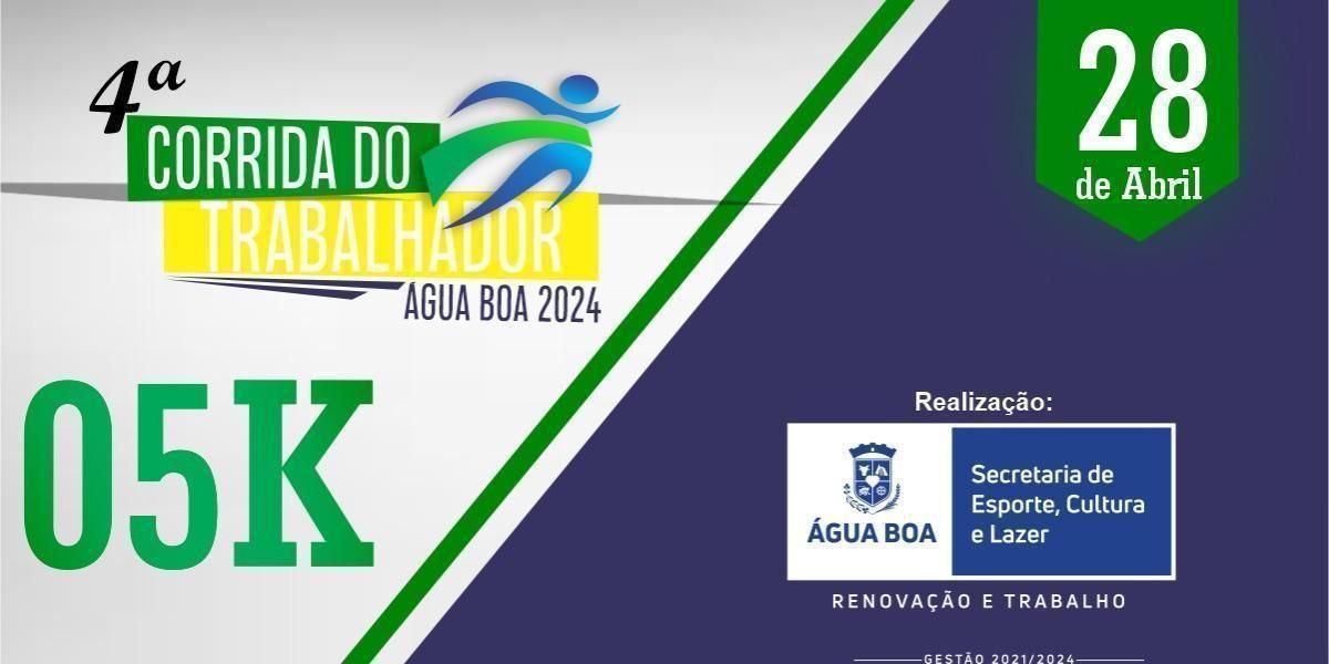 Artigo 1º. A 4ª Corrida do Trabalhador Água Boa 2023, será realizada no domingo, dia 28 de Abril de 2024.
